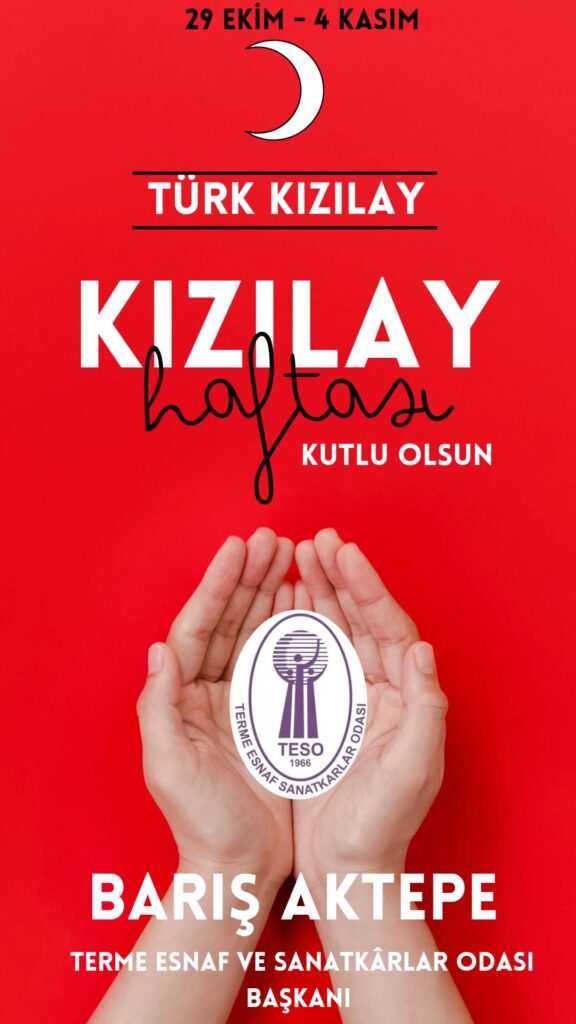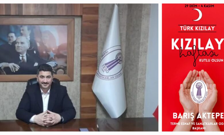 29 Ekim – 4 Kasım Kızılay Haftası dolayısıyla bir mesaj yayımlayan Terme Esnaf ve Sanatkârlar Odası Başkanı Barış Aktepe, Türk Kızılayı’nın toplumsal dayanışmanın en köklü sembollerinden biri olduğunu vurguladı.